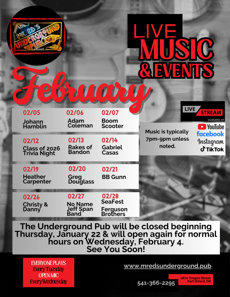 The Underground Pub is a magical place connecting musicians to music lovers with music that does not conform to the mainstream culture. The Underground is not here for fame or glory, but for the love and passion of music.